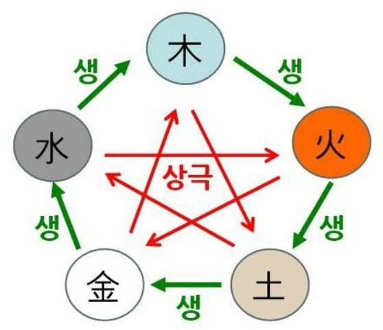 사주팔자 즉 명리학에서는 모든것이 나를 기준으로 한다. 나를 기준으로 어떠한 에너지가 어떻게 흐르는가를 해석하고 분석하는 것이 명리학인 것이다. 먼저 나를 목(木)으로 가정하고 상생의 원리를 설명해 보기로 하겠다. 나를 생하는 것은 수(水)이다. 수생목(水生木)의 이론인 것이다. 나무는 물이 있어야 키워진다. 그래서 봄엔 적당한 물이 있어야 나무가 잘 자랄 수 있는 것이다. 다음으로 내가 생하는 것은 화이다. 즉, 목생화(木生火)라고 한다. 목(木)인 나무를 잘라 땔감으로 사용해야 불을 지필 수 있다. 나무는 불인 화(火)를 살리는 존재이다. 그다음으로 화생토(火生土)가 있다. 화는 토를 생한다. 불이 지열을 발생하여 땅의 힘을 키우는 역할을 한다. 그리고 토(土)는 금(金)을 생한다. 이것을 토생금이라고 한다. 땅인 토가 곡식인 금을 잘 영글 지게 하기 때문이다. 또 금은 수를 생한다. 금생수이다. 금인 수도꼭지에서 물이 펑펑 나오는 원리이다. 이렇듯 오행은 순환적으로 서로 생한다. 목은 화를 생하고 화는 토를 생하고, 토는 금을 생하고, 금은 수를 생하며, 수(水)는 다시 목을 생한다. 이것이 봄, 여름, 가을, 겨울, 그리고 다시 봄으로 순환되는 자연의 이치와 동일한 것이다. 그러나 반드시 순차적으로 생 하기만 한 것은 아니다. 화인 태양은 목을 키운다. 그리고 과다하거나 과소할 경우에는 생하지 못할 수도 있다. 예를 들어 홍수가 들면 나무는 뿌리가 썩게 되고 나무가 너무 많으면 햇볕을 가리어 생명체가 자라지 못한다. 한여름에 너무 쨍쨍한 햇볕은 땅을 갈라놓고 메마르게 한다. 이렇듯 너무 과해도 안 좋고 너무 없어도 안 좋다. 적당히 균형을 유지해야만 상생 작용도 그 힘을 발휘한다. 이것이 우주의 원리이자 이치인 것이다. 삶 또한 똑같다. 그래서 사주팔자에 나타난 오행의 글자를 통해 상생을 분석하여 삶이 어떠할지 예견할 수 있는 것이다.